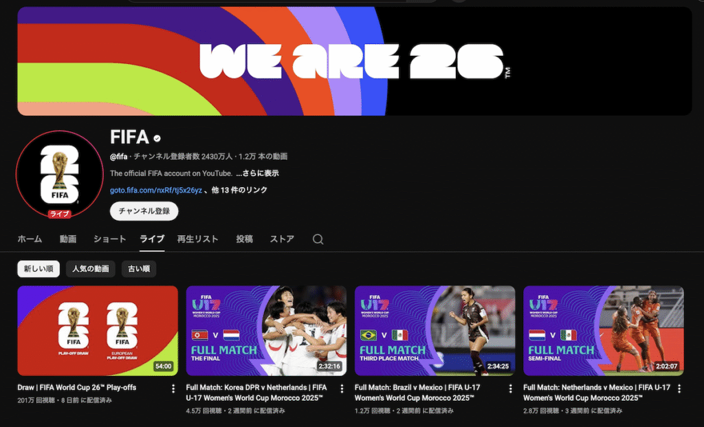 気になるライブ配信についてはまだ判明していませんが、前回大会ではFIFA公式YouTubeおよびW杯放映権を持っていたABEMAとNHKで中継がありました。