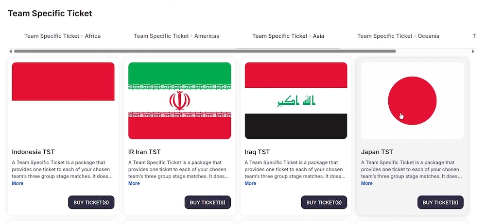TSTとは、各チームの日程・会場が判明していない組み合わせ決定前の段階で、特定のチームのグループステージ3試合をパッケージで購入するチケットです。