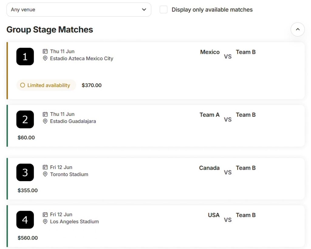 チケット価格は今後変動する可能性が高いですが、FIFA公式サイトでは一般公開されていない情報なので、現地観戦を計画している方には非常に役立つ情報だと思います!